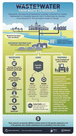 The implementation of circular economy principles in LAC and other regions in the developing world is key to reducing capital and O&M expenditures and, thereby, is at the crux of the sanitation conundrum. Numerous examples in the region indicate that this move towards a circular economy is possible. The World Bank ‘Wastewater: from waste to resource’ initiative identified four key actions to achieve this: